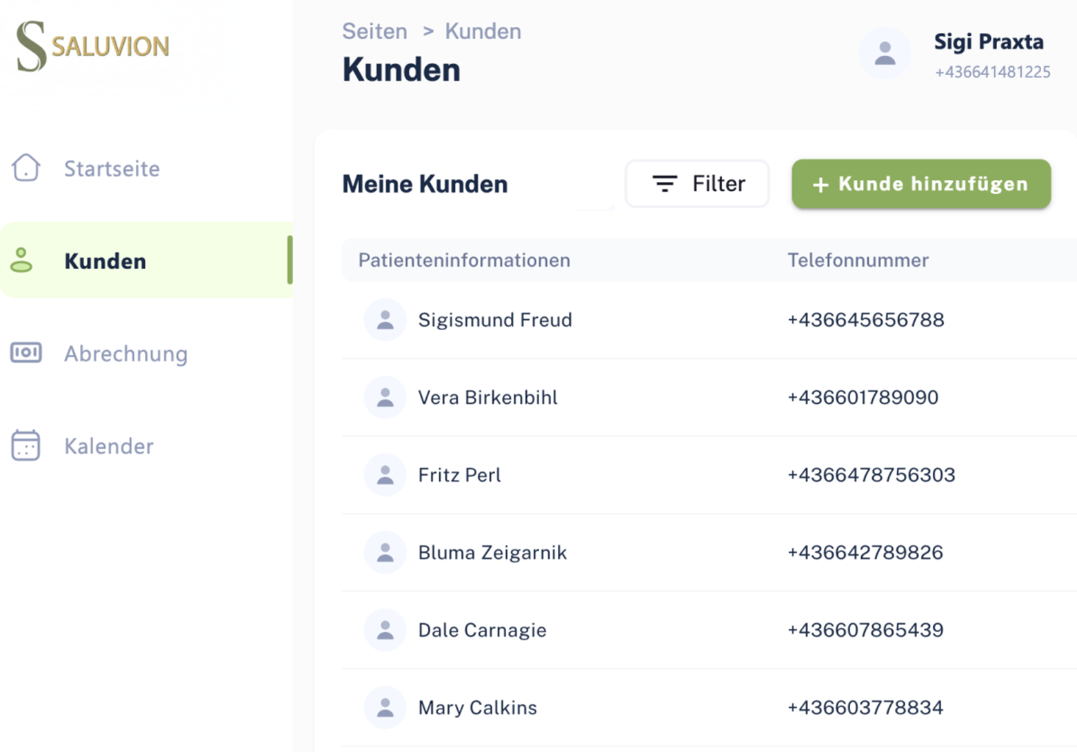 Saluvion ist eine webbasierte Praxismanagement-Software für selbstständige Gesundheits- und Beratungsexpert:innen. Sie unterstützt bei der Terminverwaltung, Dokumentation, Abrechnung und Durchführung von Online-Sitzungen – alles datenschutzkonform und übersichtlich.