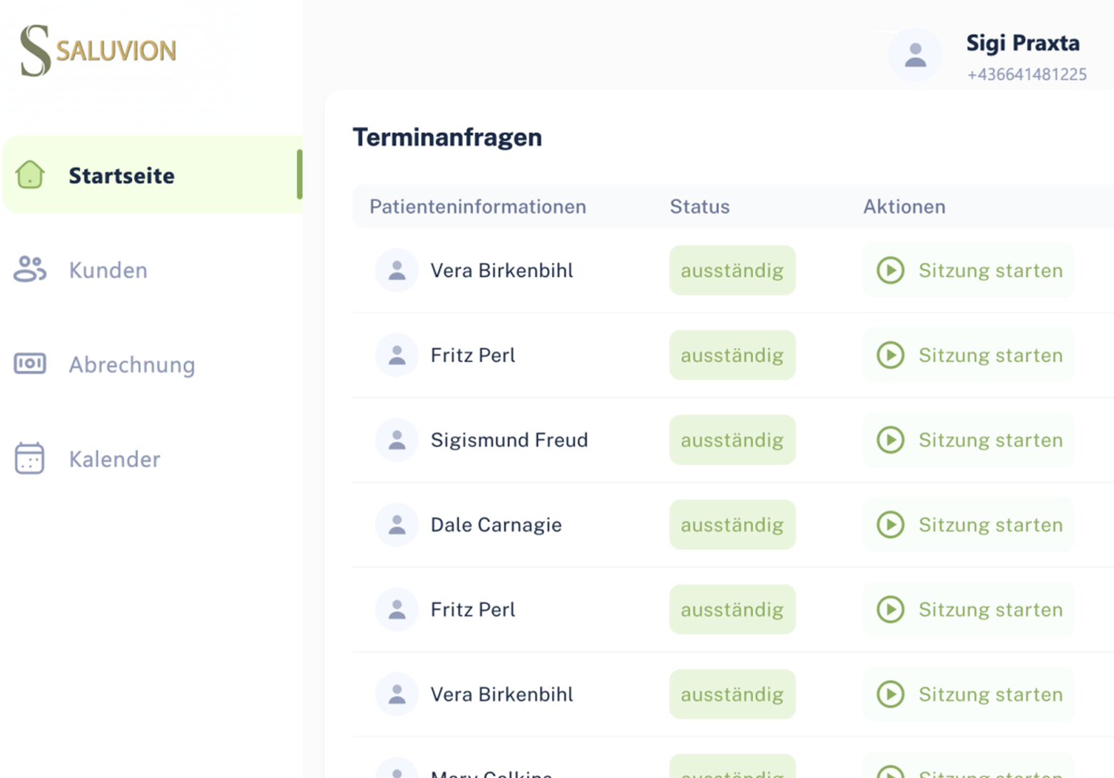 Saluvion ist ideal für Einzelpraxen und Gruppenpraxen in den Bereichen Psychotherapie, Coaching, klinische Psychologie, Ergotherapie, Physiotherapie, Beratung und weitere Gesundheitsberufe.